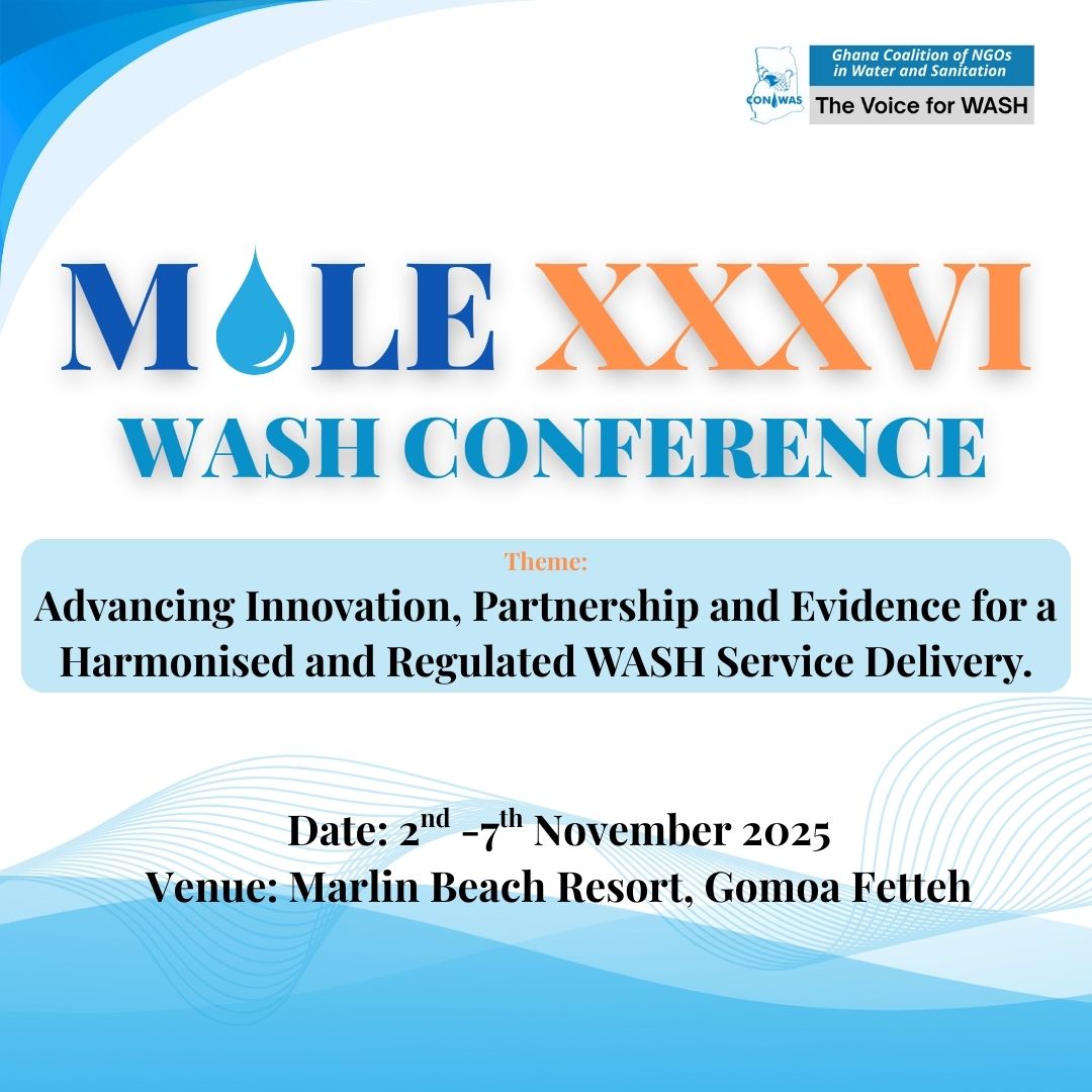 The MOLE XXXVI Conference is intended to create a common space where policymakers, practitioners and researchers can gather to give account on the state of WASH sector innovations, partnerships and evidence for a harmonized and regulated sector through the review of available evidence, interrogating the science and methods, exploring the latest learnings and existing experiences, towards reviewing progress, assessing challenges to address the WASH service delivery gaps. The conference will also explore how WASH delivery methods, sector coordination, and current service delivery models will impact Ghana’s pace towards achieving WASH for all by 2030